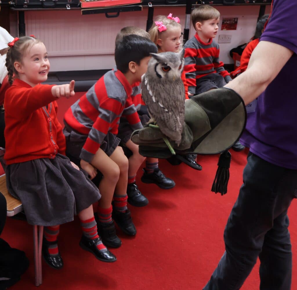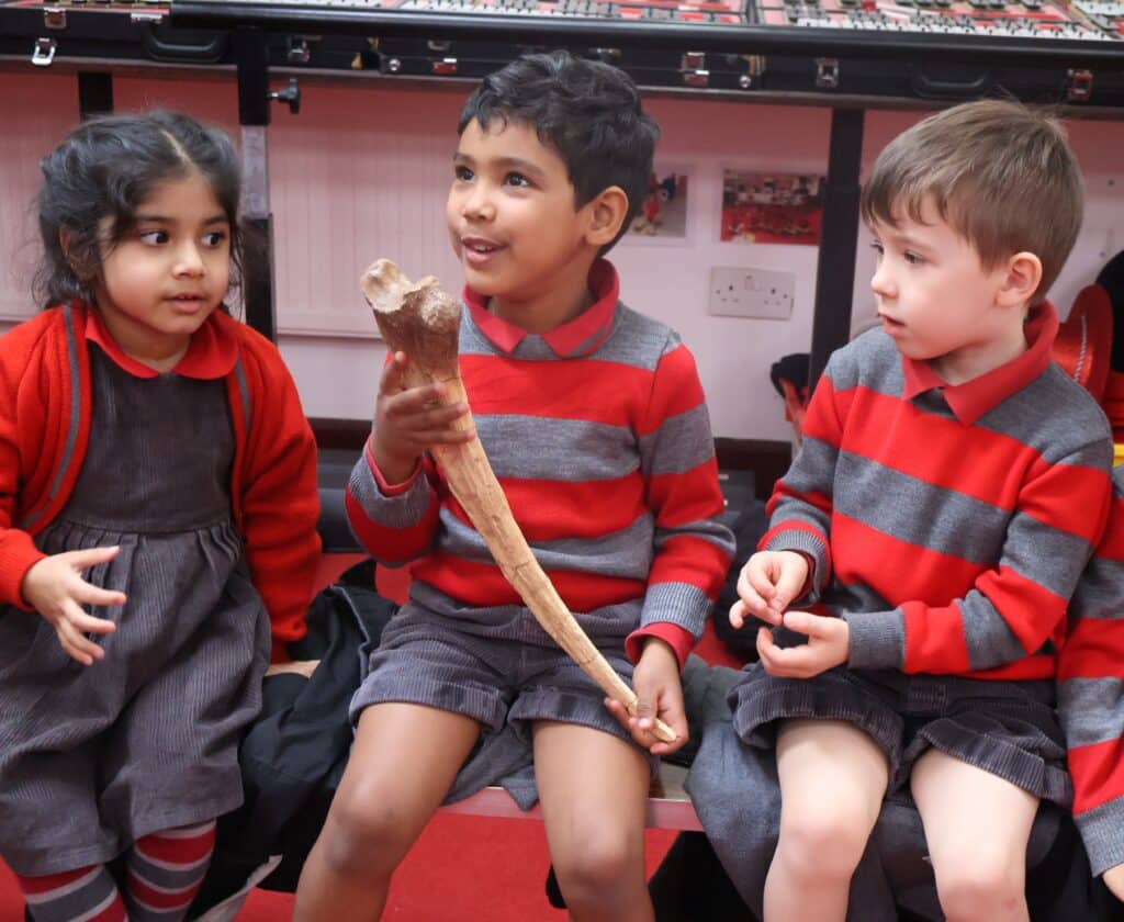 Our Class 4 children visited Milton Keynes Preparatory School for a dinosaur-themed topic morning. They had a special visit from Teaching Talons, where they had the opportunity to handle some fossils, along with meeting a number of modern-day insects and animals that may be related to the giant reptiles.
